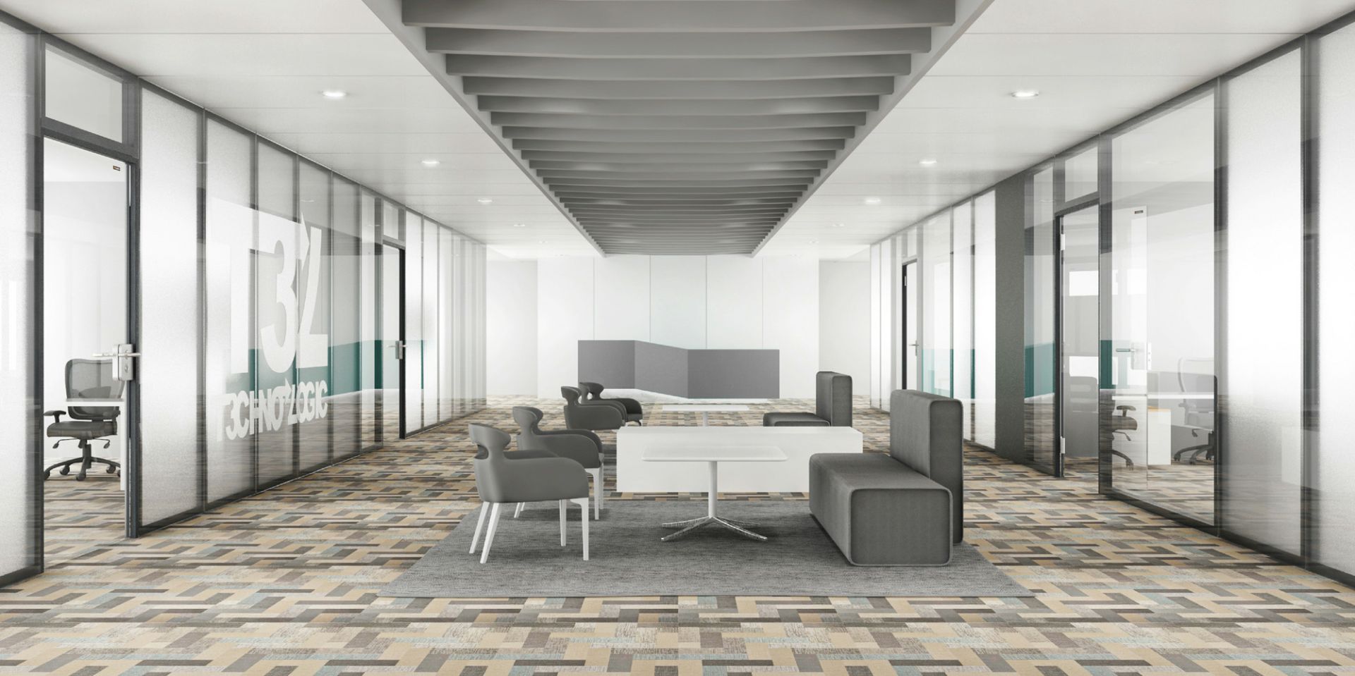 • 设计元素吸音板、百叶、丝印玻璃、设备带